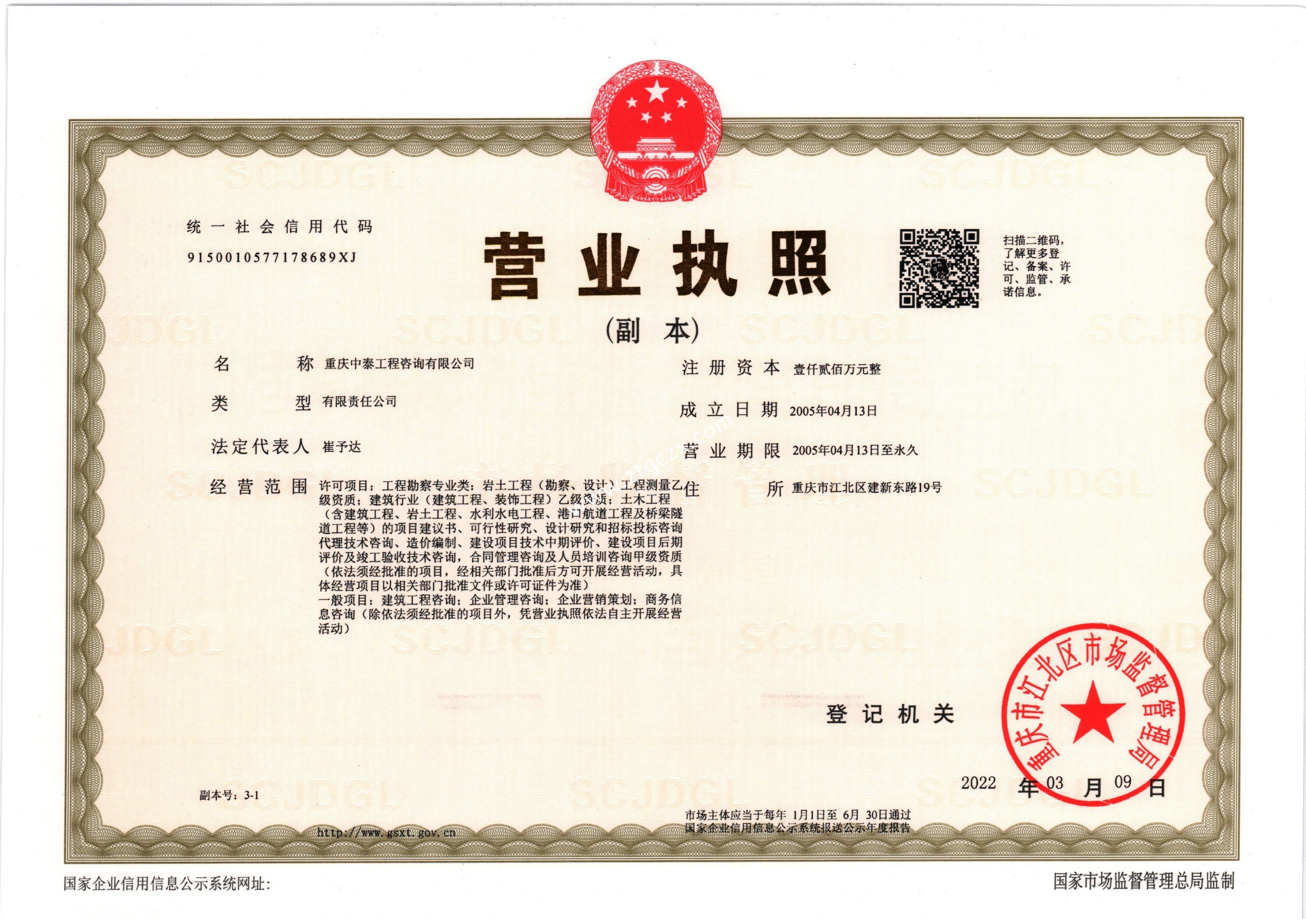 重慶中泰工程咨詢有限公司營(yíng)業(yè)執(zhí)照